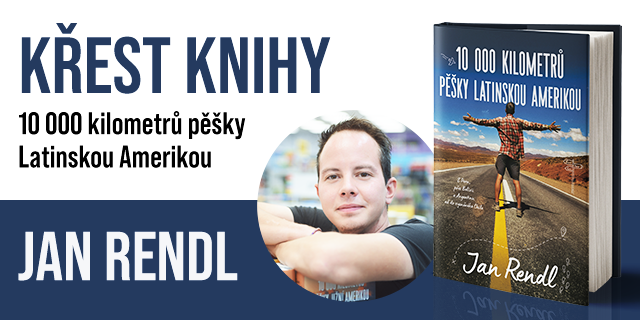 Srdečně vás zveme na křest knihy 10 000 kilometrů pěšky Latinskou Amerikou od českého cestovatele a dobrodruha Jana Rendla. Akce se uskuteční v pátek 17. září od 17 hodin, v naší knižní kavárně v knihkupectví v Brně „na Čáře“ (Joštova). Obě autorovy knihy budou na místě k zakoupení i podepsání.